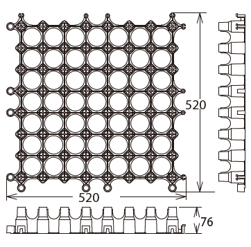 3.本体は動重圧に強い構造で、高耐圧・高荷重の駐車場や緊急車両導入路などに利用されている。