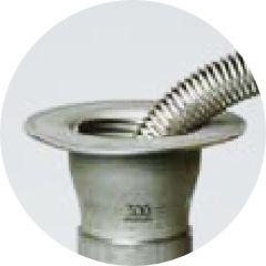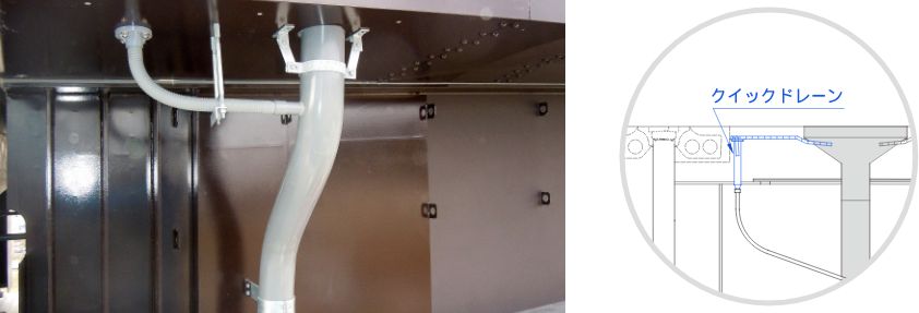 クイックドレーンは本体管及びフレキシブルチューブとの接続部が全てステンレス製【SUS304】のため、海沿いや凍結防止剤(塩化ナトリウム)・融雪剤(塩化カルシウム)を使用する降雪寒冷地にも塩害対策として数多くの実績がある。