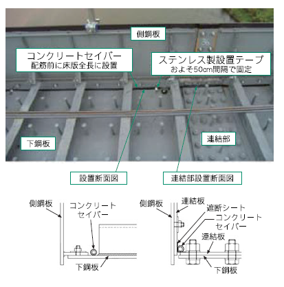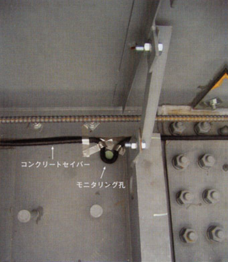 ・被覆材であるポリエステル繊維は、コンクリートを浸透させないメッシュサイズとなっている。施工試験によりスパイラル管の内部にコンクリートを流入させない性能を確認。