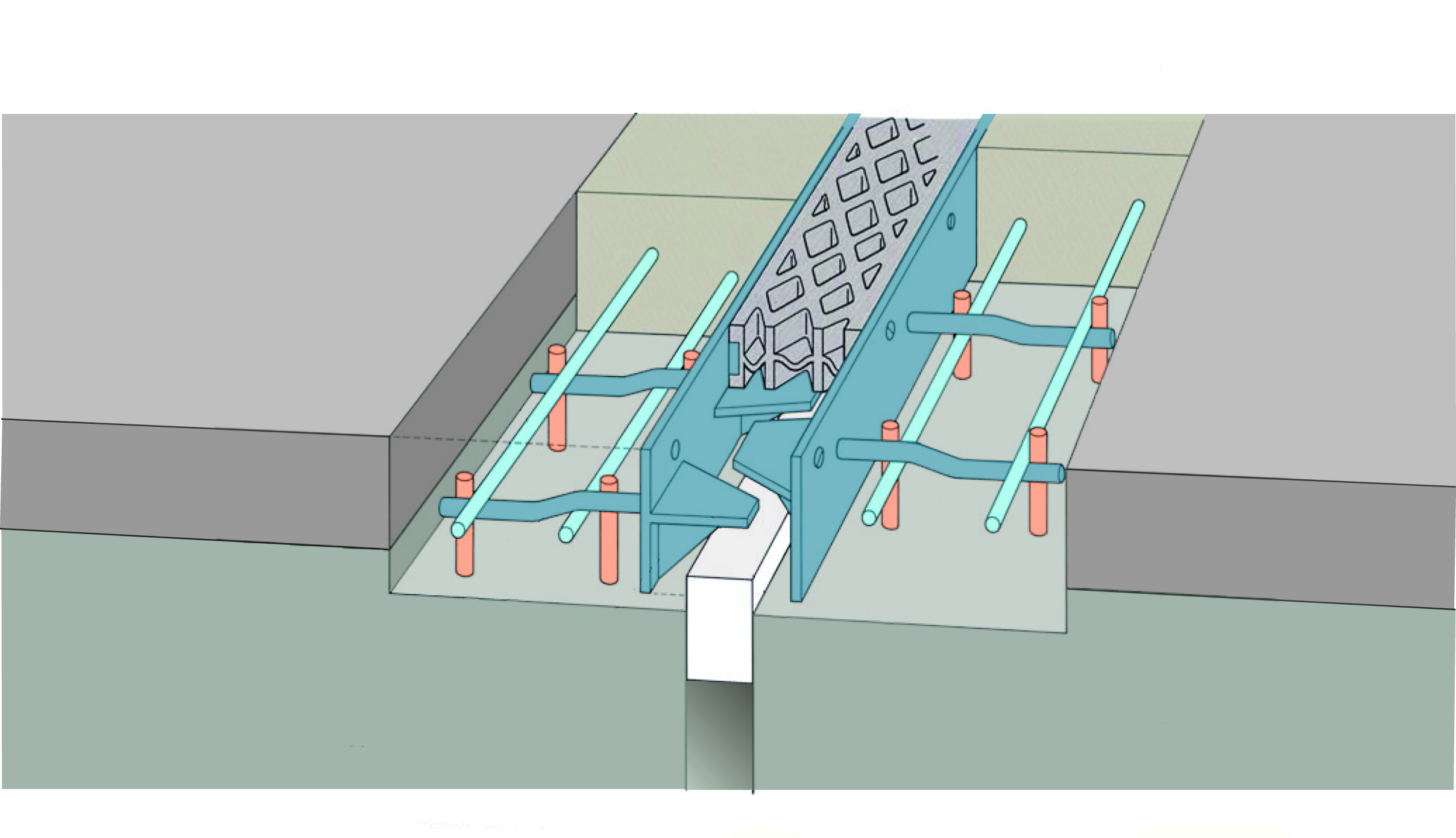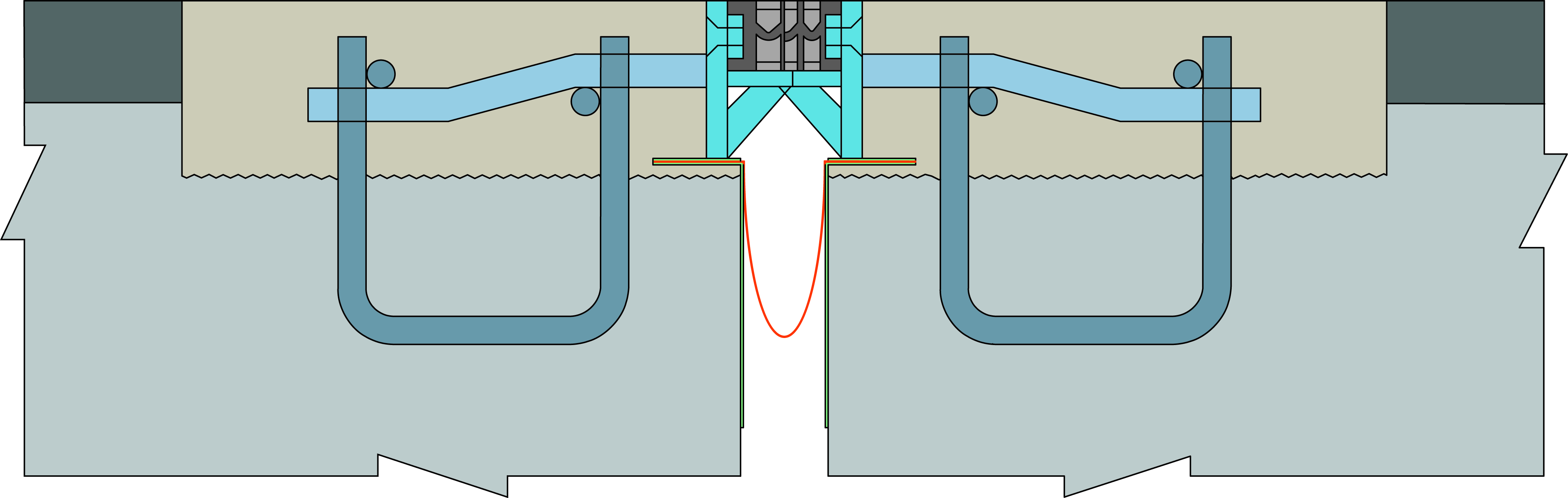 - ・荷重支持型のゴム製伸縮装置であり、支持板により表層ゴムを支える構造である。