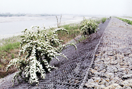 また、かごマットは設計的にも護岸用として高い信頼度を実証。流水に対して安全な護岸を形成。