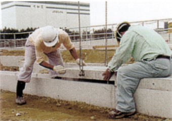 側溝敷設工:目地シール材装着