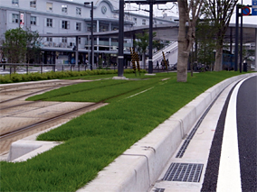 ・スリットが直線的に配置され側溝蓋と桝蓋の幅が同サイズのためスッキリした道路景観が形成