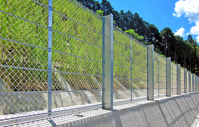 柔軟なワイヤロープと鋼製支柱により落石エネルギーを効率よく吸収する。...