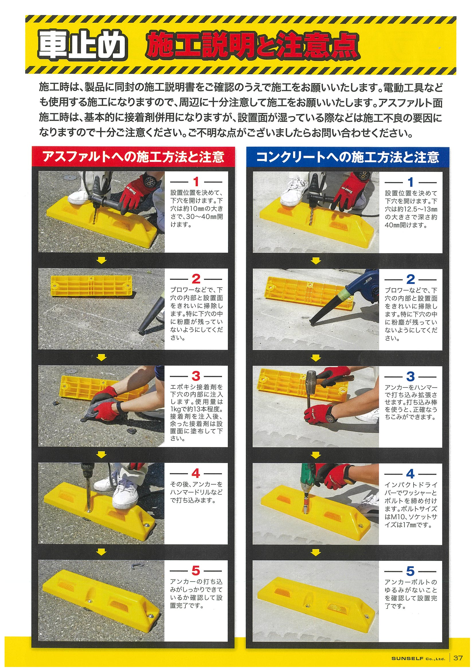 固定用アンカーが付属しています。 アスファルト コンクリート面 使用面に対応して選択可能です。