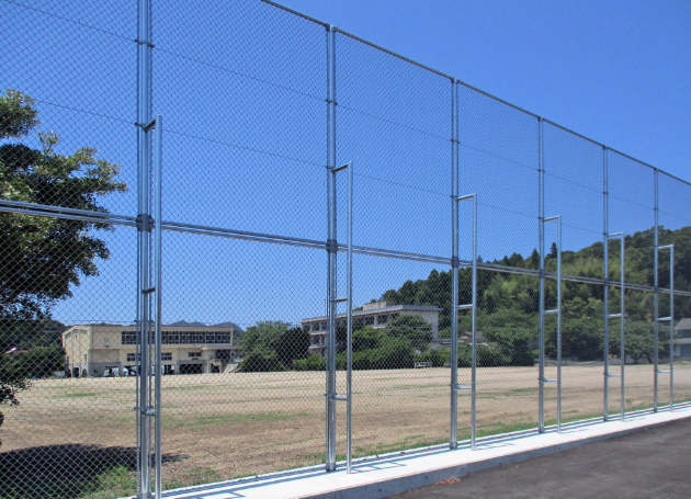 力学的に強度の高いパイプ構造は、同時に飽きのこない美しさも生み出す。そのベーシックな外観は周囲の多様な環境に自然に溶け込み、また仕上がり形状は、内、外どちらから見ても同じで設計も容易。時代を超えたスタンダードなスタイル。防球柵向けの高尺フェンス。