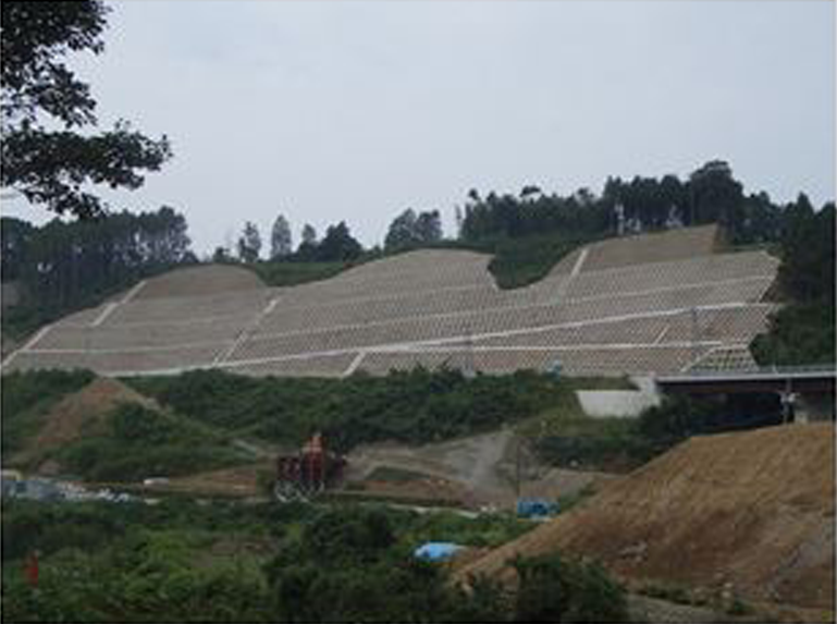 部材相互のはめ込み結合により格子を組み、のり面にアンカーで固定する簡単・経済施工のリサイクルプ...