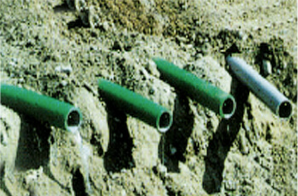 従来の集水パイプでは不可能とされていた「フィルター材」の役目を果たし、集水効果をあげると同時にパイプの目詰まりを防止。 地すべり防止に大きな威力を発揮する。