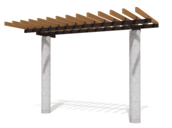 ベーシックパーゴラ 木質樹脂アルミ複合材桟木と擬石柱で耐久性に優れている。