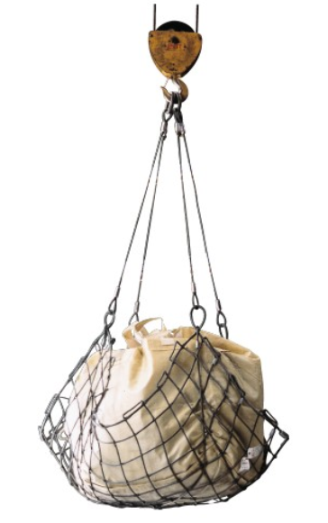 ワイヤロープで網状(かご状)に作られた吊り具であり、クレーンなどで資材や土砂、廃材などをまとめて吊り上げて運搬するために使用される荷役用具である。