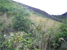 不安定になりがちな急勾配のり面をソイルクリートで保護しながら「勾配緩和網」の設置により確実な緑...