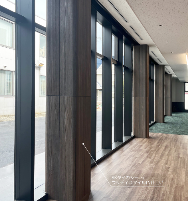 鉄骨の意匠を活かす次世代の耐火被覆材である。シートタイプで 1 時間、2 時間の耐火認定を取得。梁は 1.5mm または 3mm、柱は 1.7mm または 3mm と薄く、耐火塗料との複合認定も取得している。乾式のため、施工中の臭気も抑えることができる。 膜厚管理が不要となるスマートマテリアルであり、耐火塗料では困難であった平滑仕上げが可能。仕上材の選定によって意匠性が更に向上。