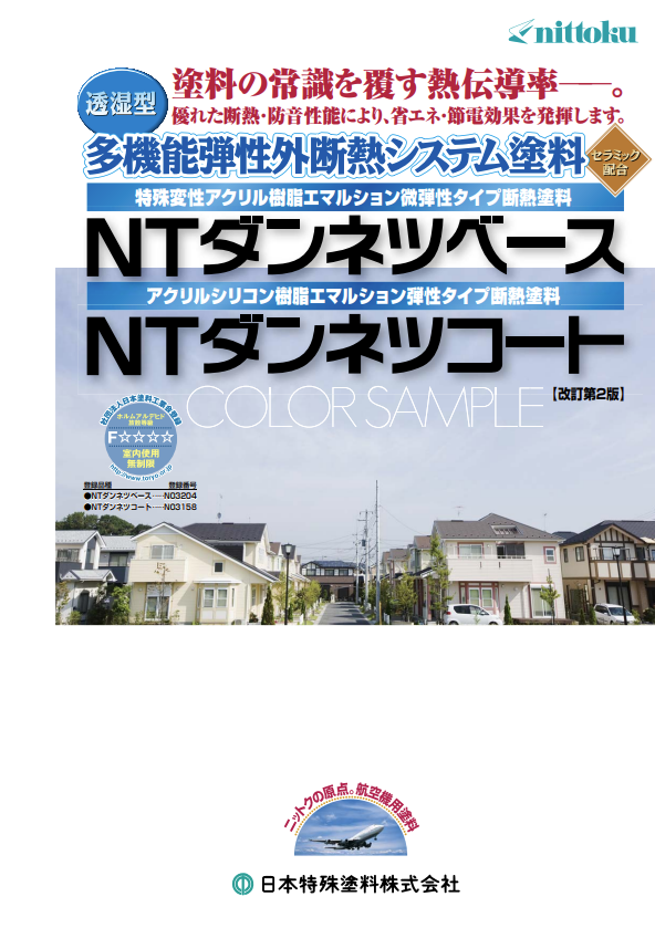 フッ素樹脂の採用により、耐候性・耐久性が極めて高い水系の遮熱塗料。一般塗料と施工方法はかわらず...