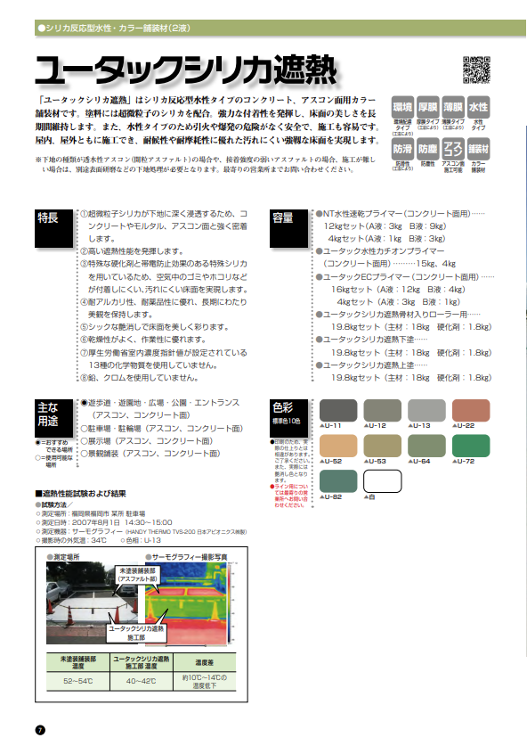 アクリルシリコンタイプであり耐候性に優れており、温度上昇の要因である赤外線を効率よく反射する。...