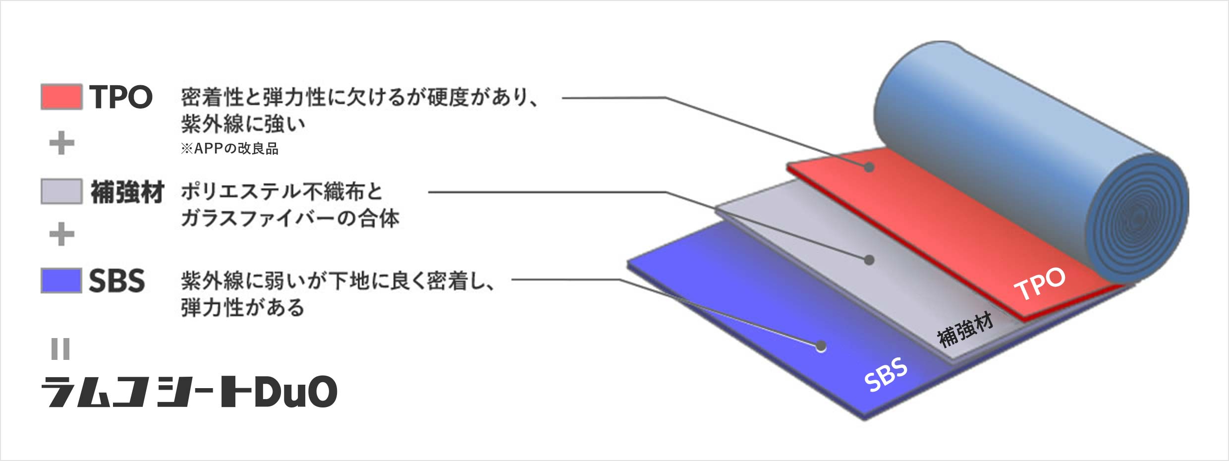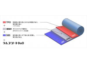暑さに強いTPOと寒さに強いSBSの2つの特性を併せ持った、究極の高性能・高耐久防水ルーフィング材。高温下でも表面が変形せず、下地への密着力に優れている。 適切なメンテナンスで20年の耐久も可能。