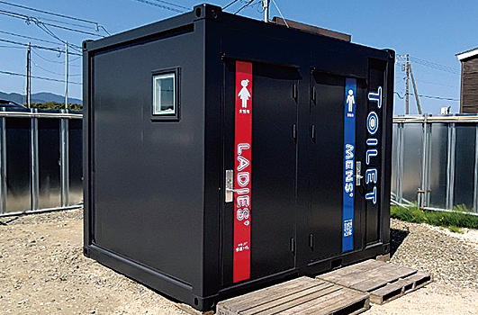 清潔と快適にこだわった移動式トイレユニットで、建設現場用を開発した。4t級のクレーン付きトラッ...