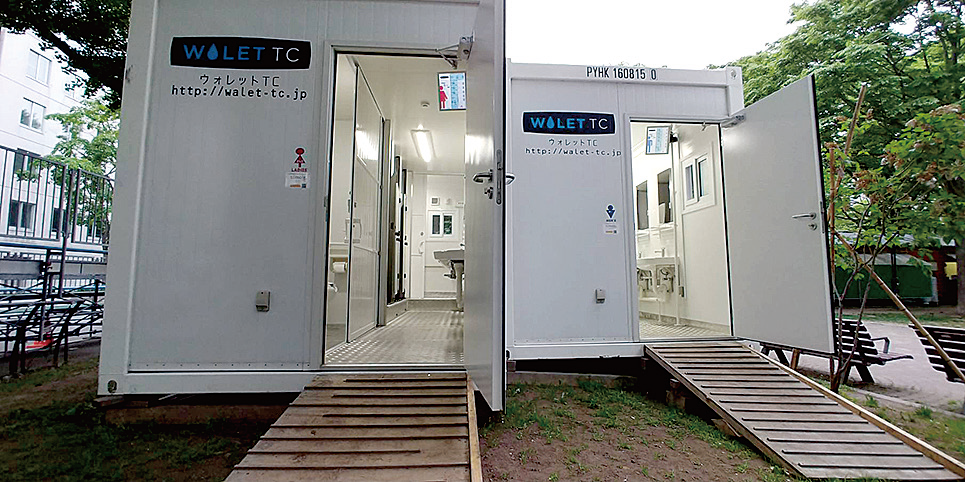 清潔と快適にこだわった移動式トイレユニットで、建設現場用を開発した。4t級のクレーン付きトラッ...