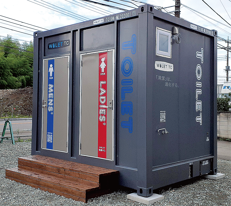 清潔と快適にこだわった移動式トイレユニットで、建設現場用を開発した。4t級のクレーン付きトラッ...
