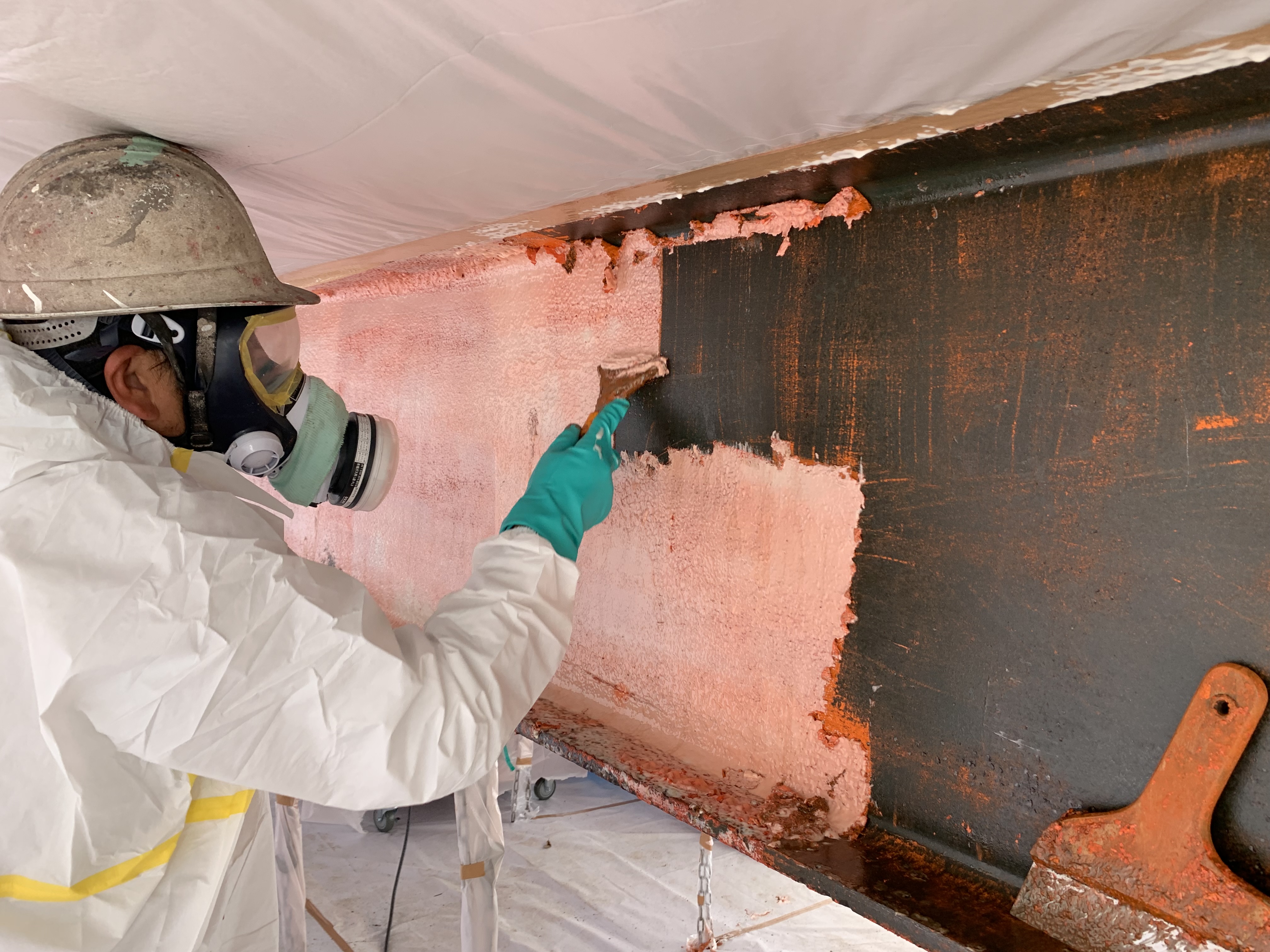 劣化した既存塗膜面に安全な生分解性塗膜軟化剤を塗布し、塗膜を軟化させ高圧温水を噴射することによ...
