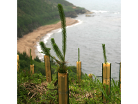 ヤシ繊維を特殊な樹脂で筋付きのテープ状に成型した、天然杉皮に代わる樹幹保護用資材。