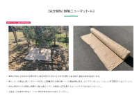 雑草の発生と土壌水分の蒸散を防ぎ、地温を安定させることで苗木の根の活着を助け、健全な生育を促進する。 麻フェルトの表面に麻クロスシートを施した2層構造が、従来の麻マットの表面剥離を抑え、よりワラに近いふっくらとした空気層を作り出している。 樹木の根元だけを効果的に保護する角・丸型タイプと、植栽場に全面施敷するロールタイプを取り揃えている。 注意点:生分解性の防草シートは一時的な防草目的で使用すること。