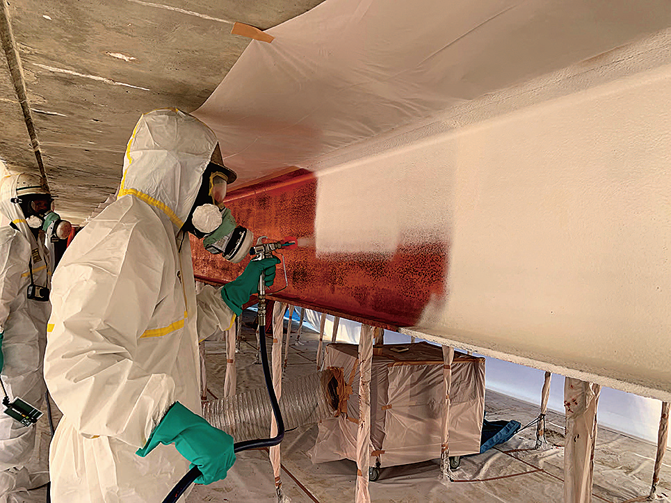 ・ 塗膜除去対象物の構造、塗装系、塗膜厚を部位毎に考慮し、標準塗布量0.70㎏ / ㎡の中で、0.50㎏ / ㎡~1.0㎏ / ㎡と状況に合わせた効率の良い作業調整が可能。