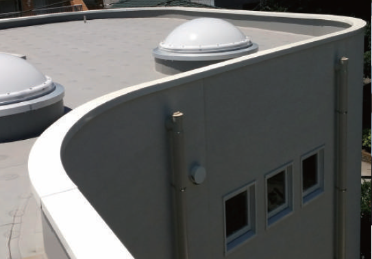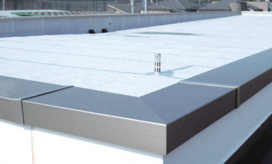 パラペットや防水層を保護し建物を守る。140mm幅から400mmまで11種類の既製サイズがある。対応サイズがない場合は折り曲げ加工で製作対応、また改修工事で役立つ深被り笠木も製作可能。