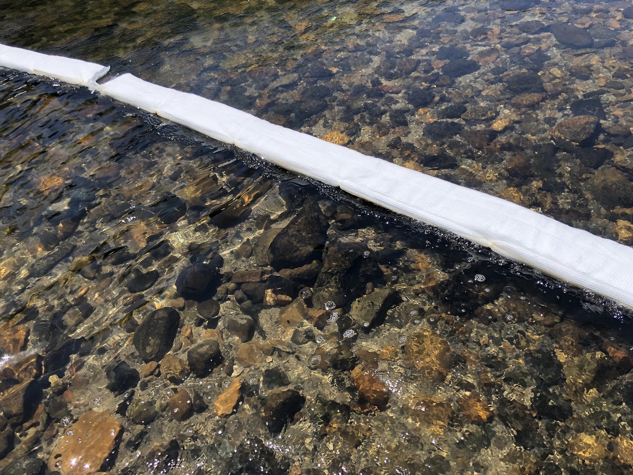 吸着量が多く浮力が強い一方で、厚さ2.5cm 巾20cmとスモールサイズなので、予防展張などで長期にわたり水面に張り続ける場合にコストダウンとなる。