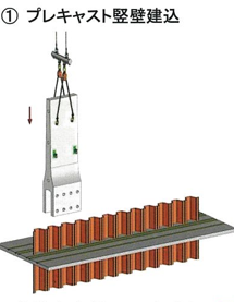 ‣現地作業は鋼矢板の打ち込み・プレキャスト部材の接合・接合部のコンクリート施工のため特殊な作業はなく、熟練工が不要となる。