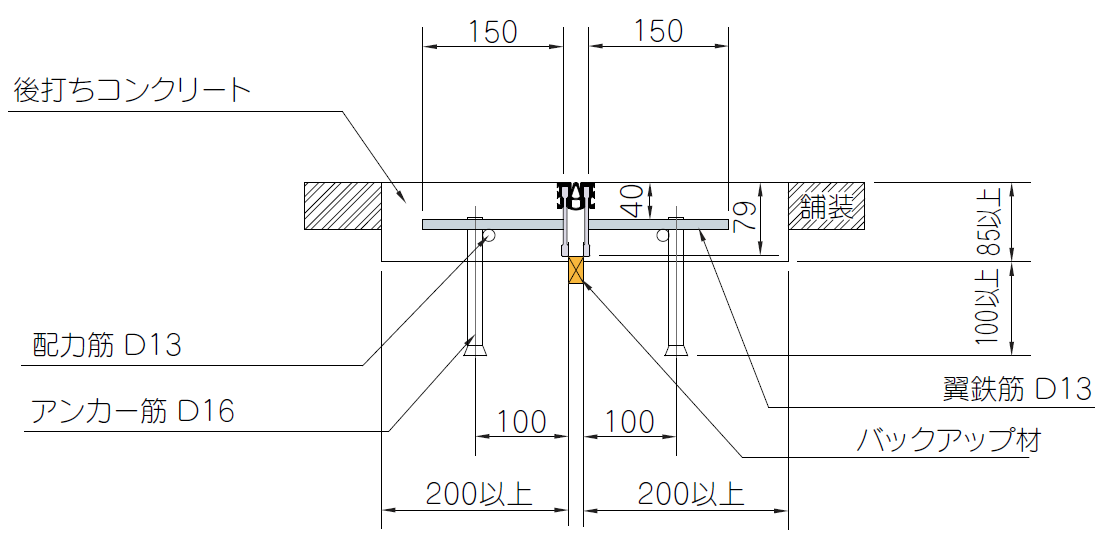 - ・舗装表面には鋼材が露出せず、ゴム部材で覆われる構造である。