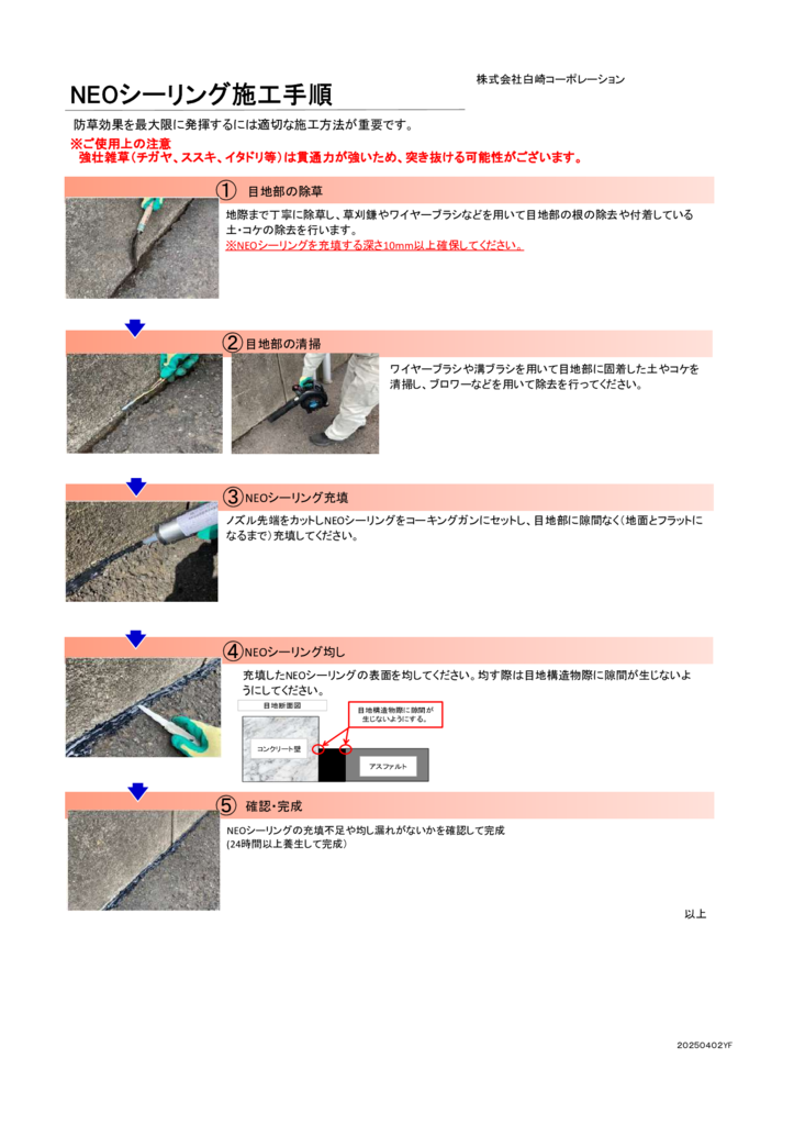 敷地などのコンクリート目地から発⽣する雑草の防除