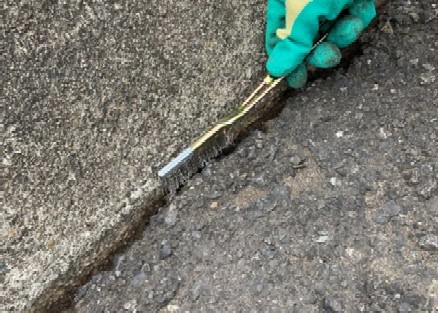 溝ブラシなどで目地部側面に付着している土埃などを除去する。
