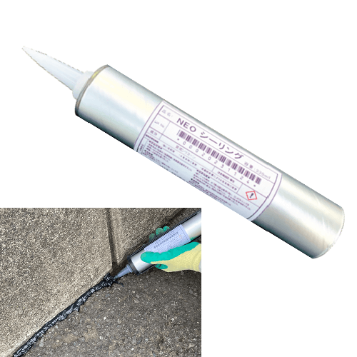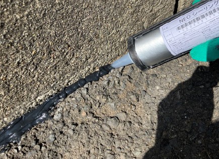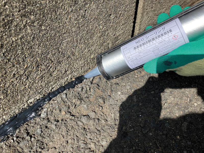 NEOシーリングをコーキングガンにセットし、目地部(地面とフラットになるまで)に隙間なく充填する。