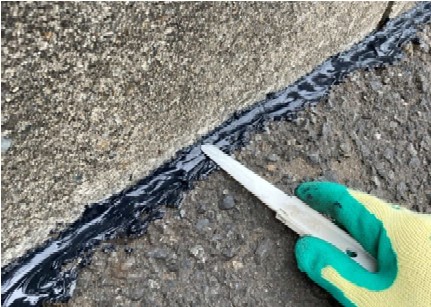 アスファルトやコンクリートの伸縮にも追従可能なシリコン材(変成シリコーン)を使用。