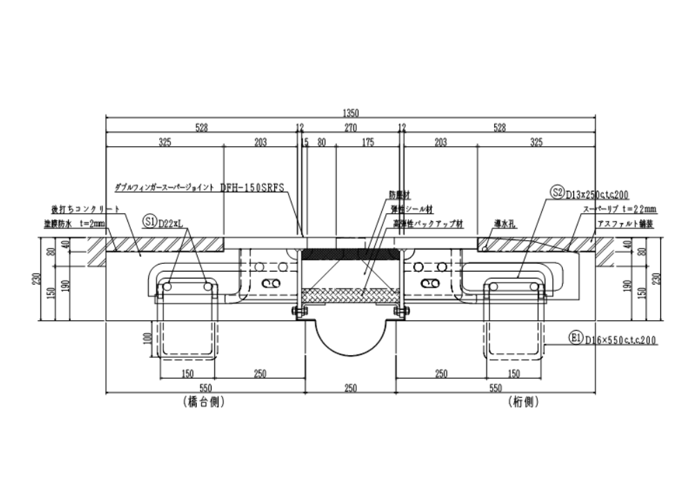 - ・伸縮装置遊間部に防塵層を設けることで土砂等が詰まらない構造とすることで止水層を保護する構造。