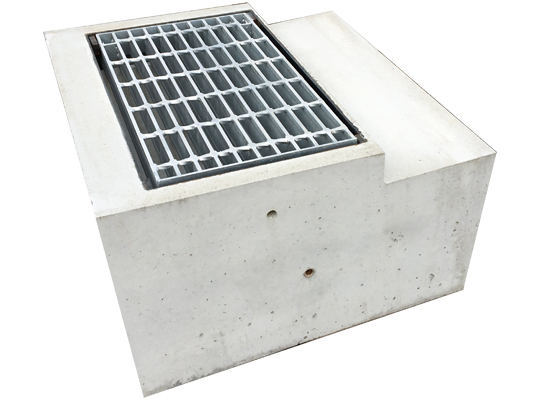 同社タイプの角型の桝。450角と600角があり、蓋はコンクリート製もしくは鋼製グレーチングとなる。