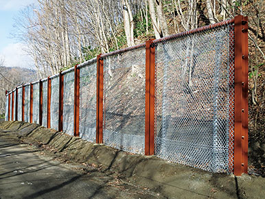 道路沿いに簡単に設置できる落石防護柵 ⇔ 用地買収が不用 ...