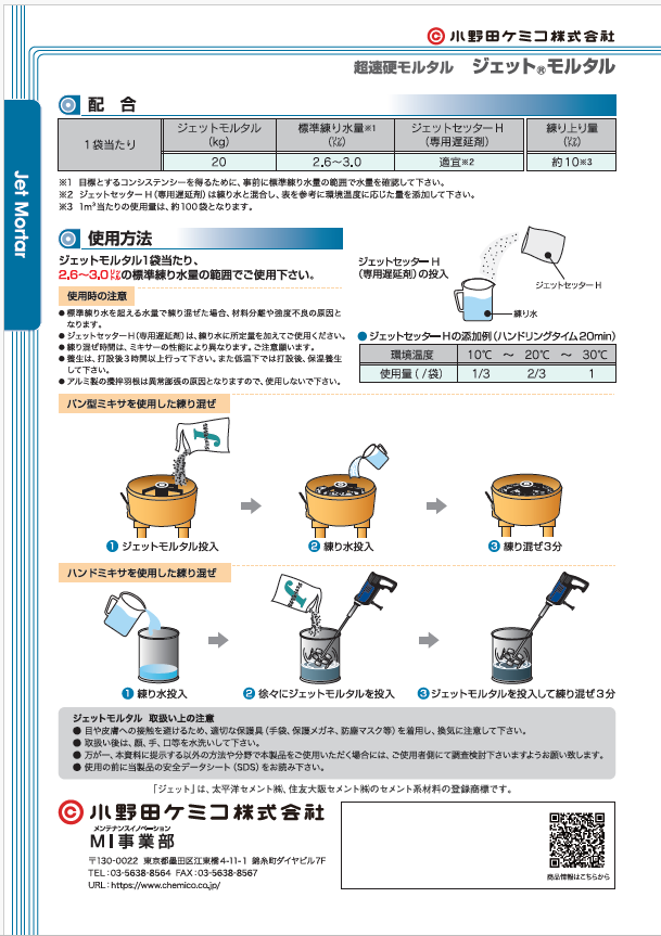 水を加えて練り混ぜるだけで、現場で簡単に超速硬モルタルが製造できます。