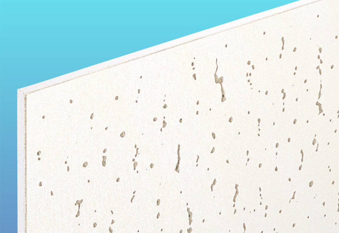 直張り化粧天井ボード。 洋風天井用化粧せっこうボードとして、住宅を始め事務所、店舗などあらゆる種類の建物に広く用いれる。押型加工による意匠効果と、変化に富んだトラバーチン模様が特長。 柄パターンは地域により多少異なりますので、設計、発注に際してはご確認ください。
