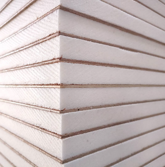 ミラフォームとラワンベニヤ合板とを接着加工した断熱・防露用複合板である。