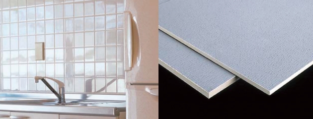■特長及び主な用途 ・内装のタイル張り下地専用ボード 台所、トイレのタイル下地に使用可能。 ・タイルをそのまま張ることが可能 セラミック骨材入りの凹凸特殊コート仕上げになっているため、接着性が良く、タイルを容易に張ることが可能。 ・工期短縮・コストダウンに役立つ 下地組み→ボード張り→タイル張りという短い工程のため、モルタル工法の約2分の1で済ませることが可能。 ・不燃材料 建築基準法で定められた法定不燃材料で、国土交通大臣認定を取得している。