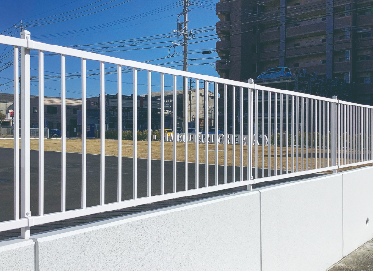 角パイプの格子がピケットフェンスの高級感をより一層高める。