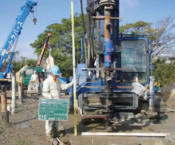 軟弱地盤を改良する技術。建築物や工作物の基礎を支持させる技術。従来はセメントスラリーを高圧で噴...
