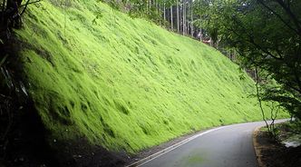 1. 緑化基盤材(サングリーン)と安定剤の相乗作用により、自立性が高く、降雨、凍結による侵食、崩落がない。