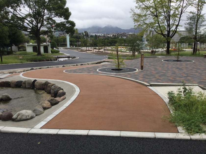 ブロックのような段差が生じず、平坦性に優れ、「ユニバーサルデザイン」対応型の舗装。