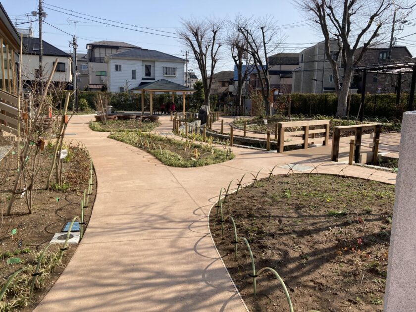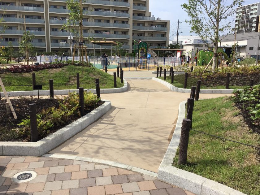 表面が細かい凹凸のため雨に濡れてもすべりにくく、歩きやすい舗装。