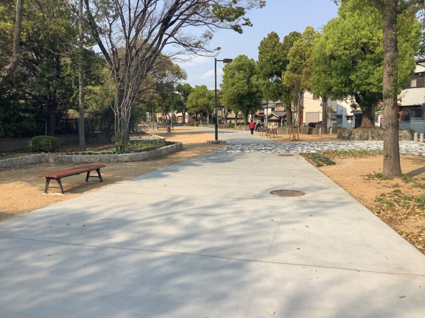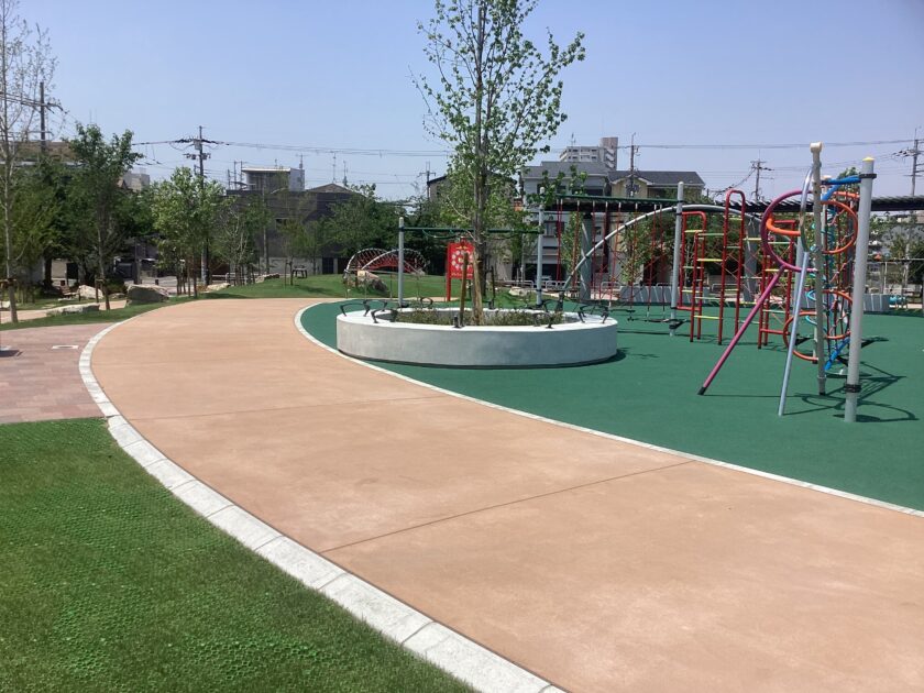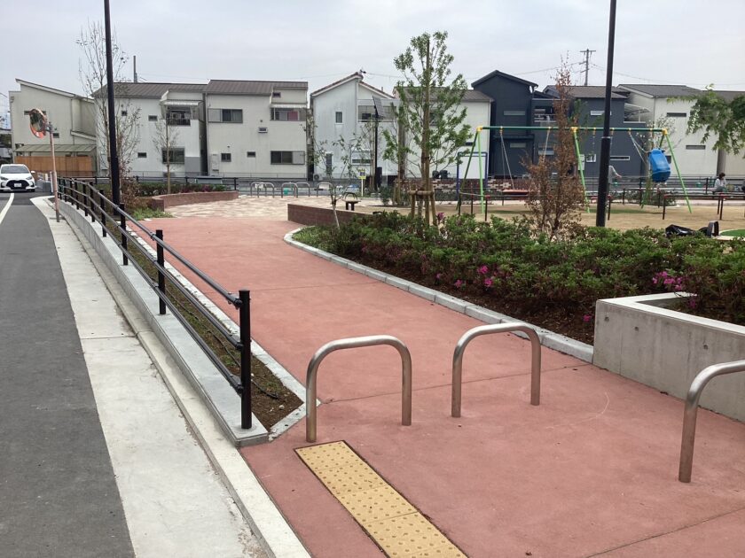 ・表面が細かい凸凹のため水はねが少なく、雨に濡れてもすべりにくく、歩きやすい舗装。