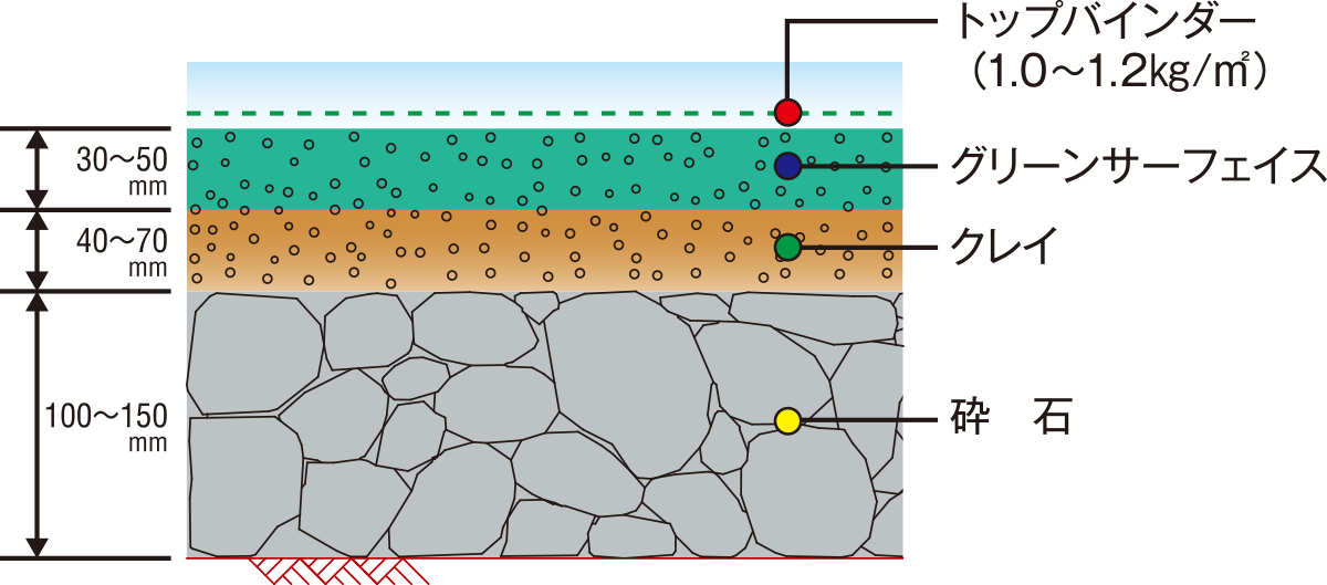 また降雨後も軟弱になりにくく回復が早い上、透水性が良いためグラウンドに最適。