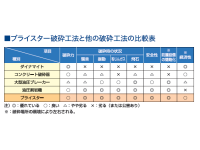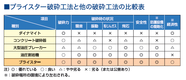 | ブライスター破砕工法と他の破砕工法の比較表 |