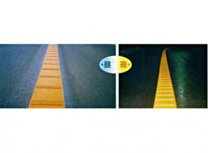 リブ式突起形状に筋をもたせた新形状で、ガラスビーズも保護する様設計され、夜間視認性を向上した。